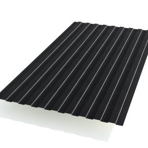 Черный профнастил – это профилированный стальной лист, покрытый защитным слоем черного цвета. Он изготавливается методом холодного проката с последующим нанесением полимерного или лакокрасочного покрытия, что придает ему эстетичный вид и дополнительную защиту от коррозии.