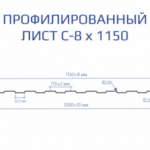Профнастил МП-20 1150мм Полиэстер 0.45 мм RAL 8017
